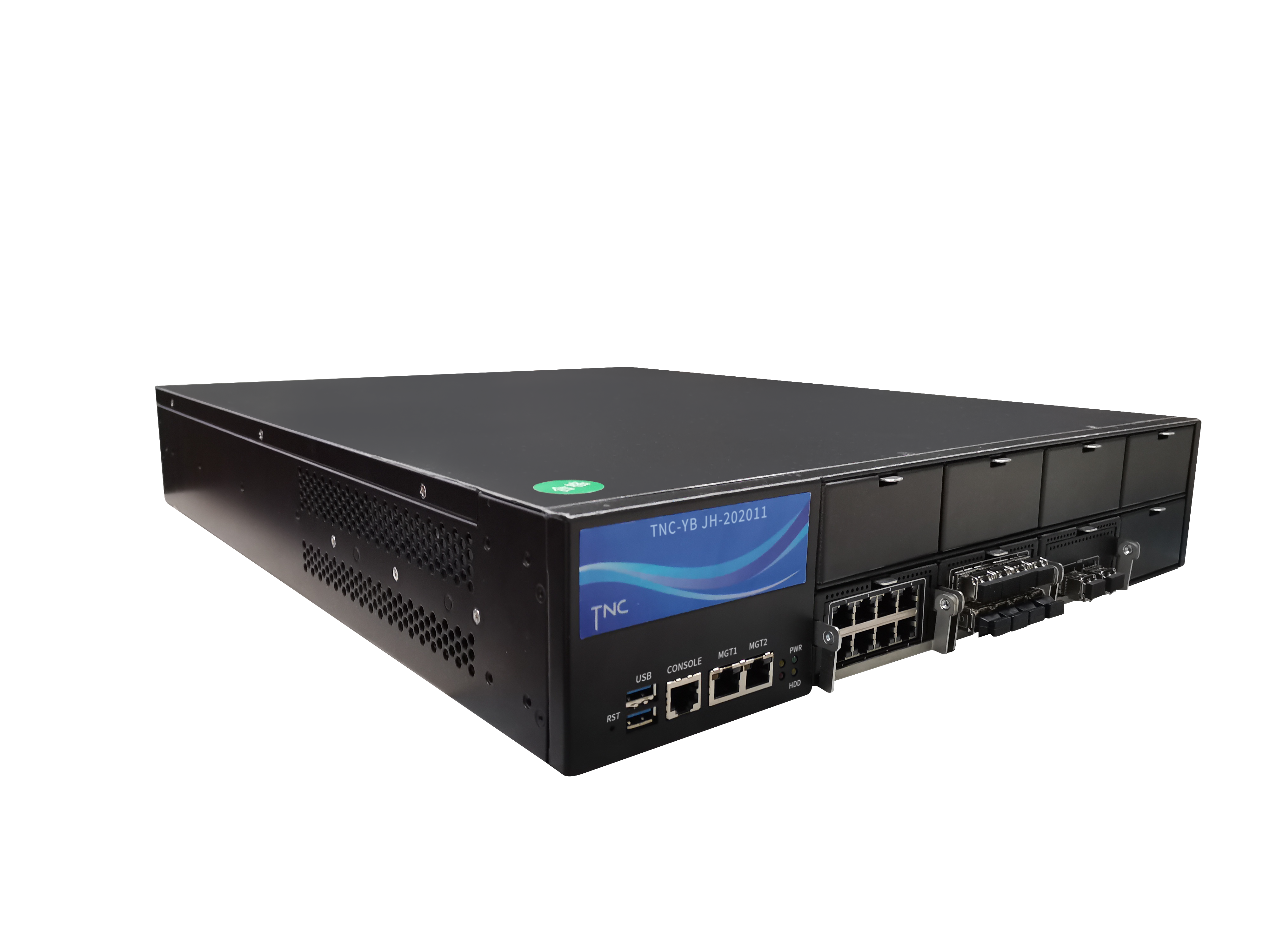 迷網誘捕系統為2U 19英寸可上架機箱。設備采用2塊可拔插的電源模塊實現1+1保護功能。業務接入方面采用模塊化設計,每臺設備最大支持8個高速接口模塊,便于用戶根據不同的需求靈活配置。