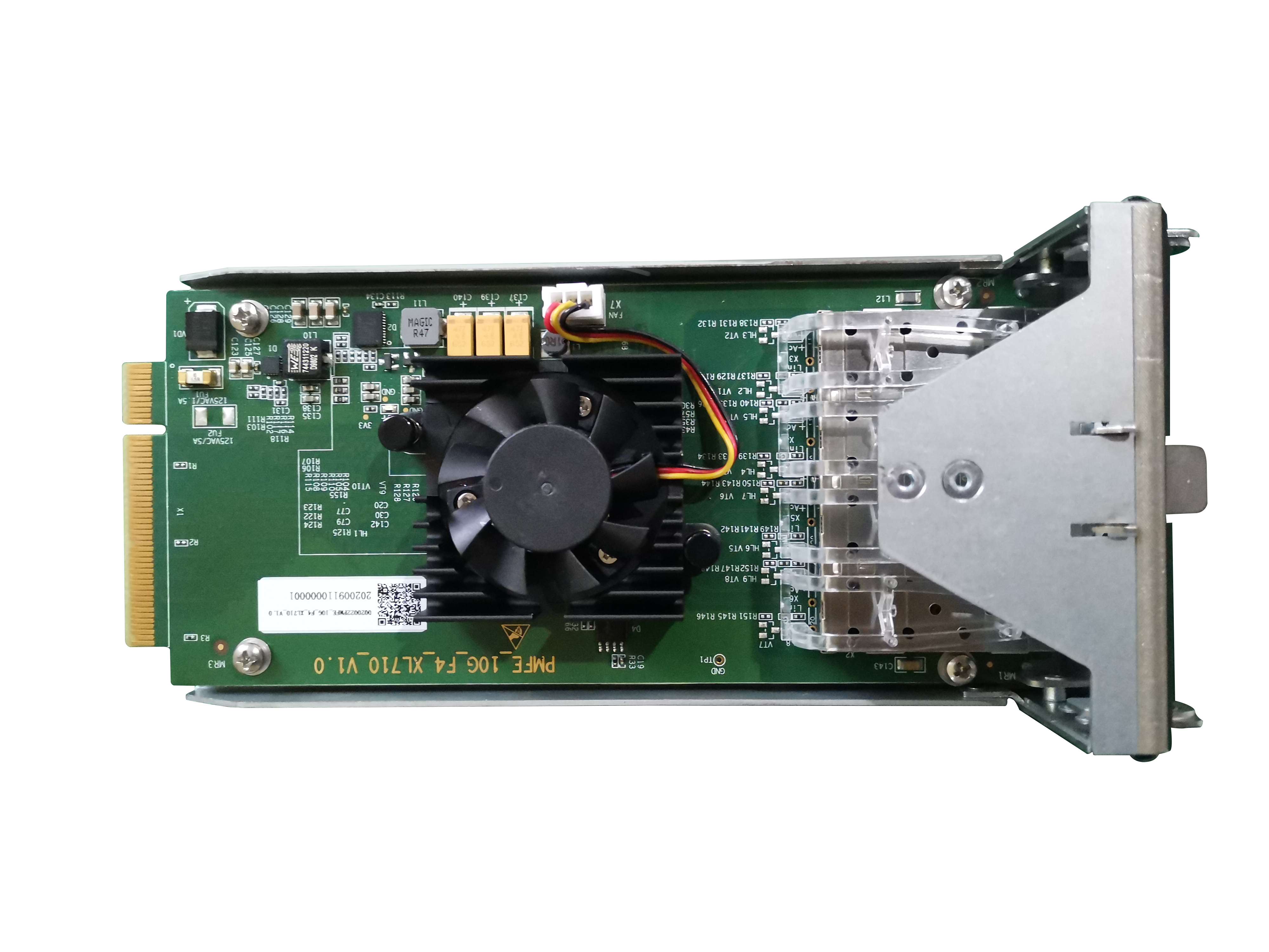 PCIe網絡模塊是由一款服務器級別的網絡芯片設計而成,提供4路萬兆以太網光接口。
